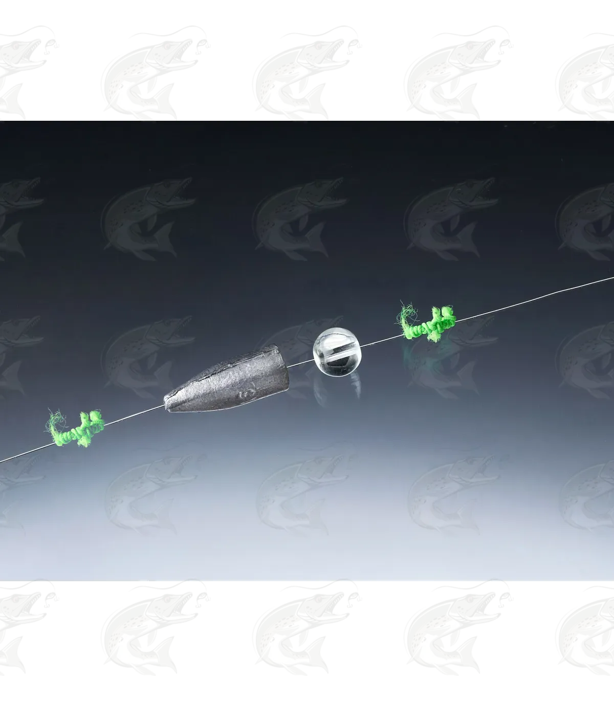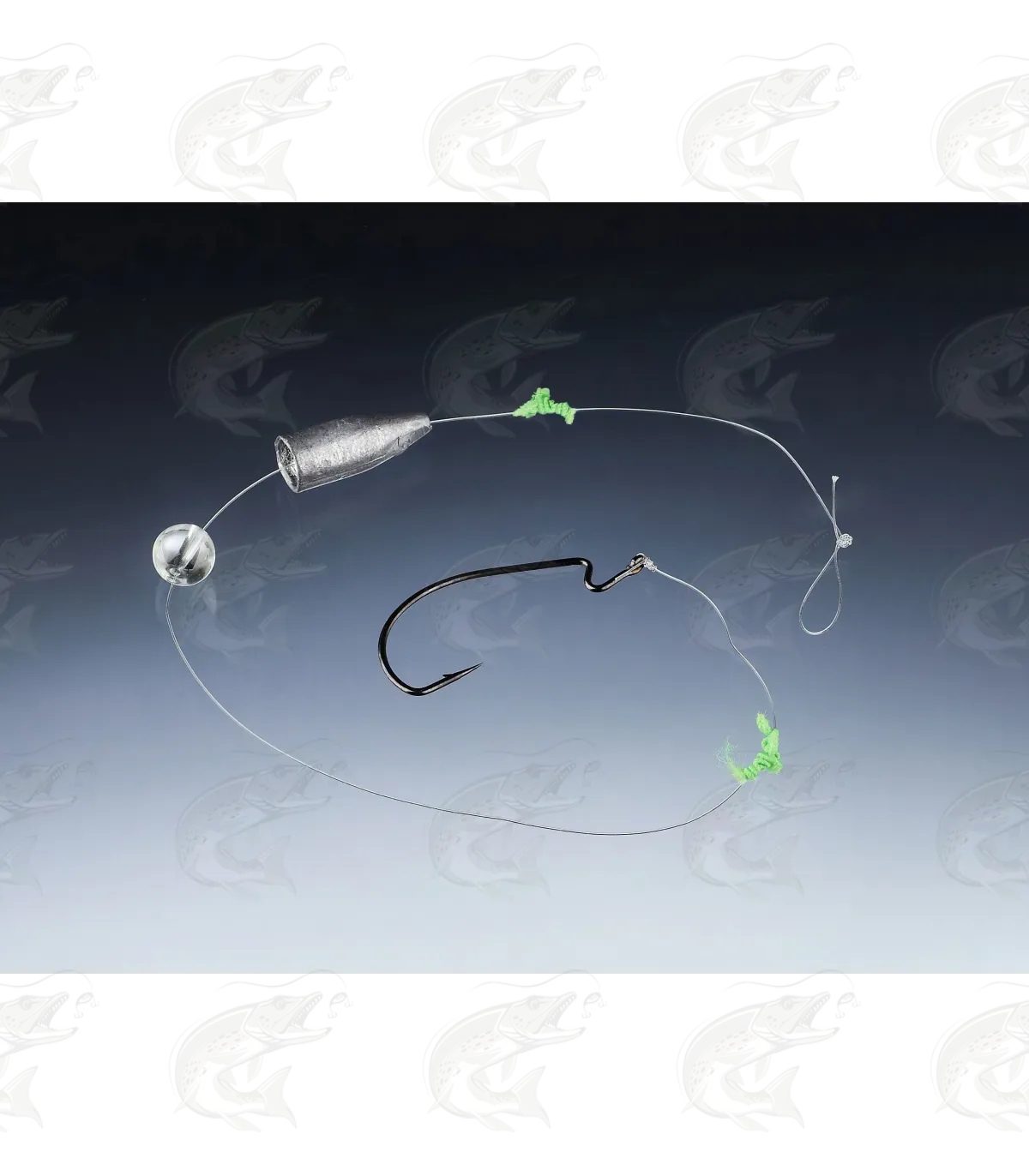 Thanks to the line stopper, the distance between hook and bullet-type weight can be varied at will. Thus the leader can be fished as a Texas, Carolina or lazy lure rig.