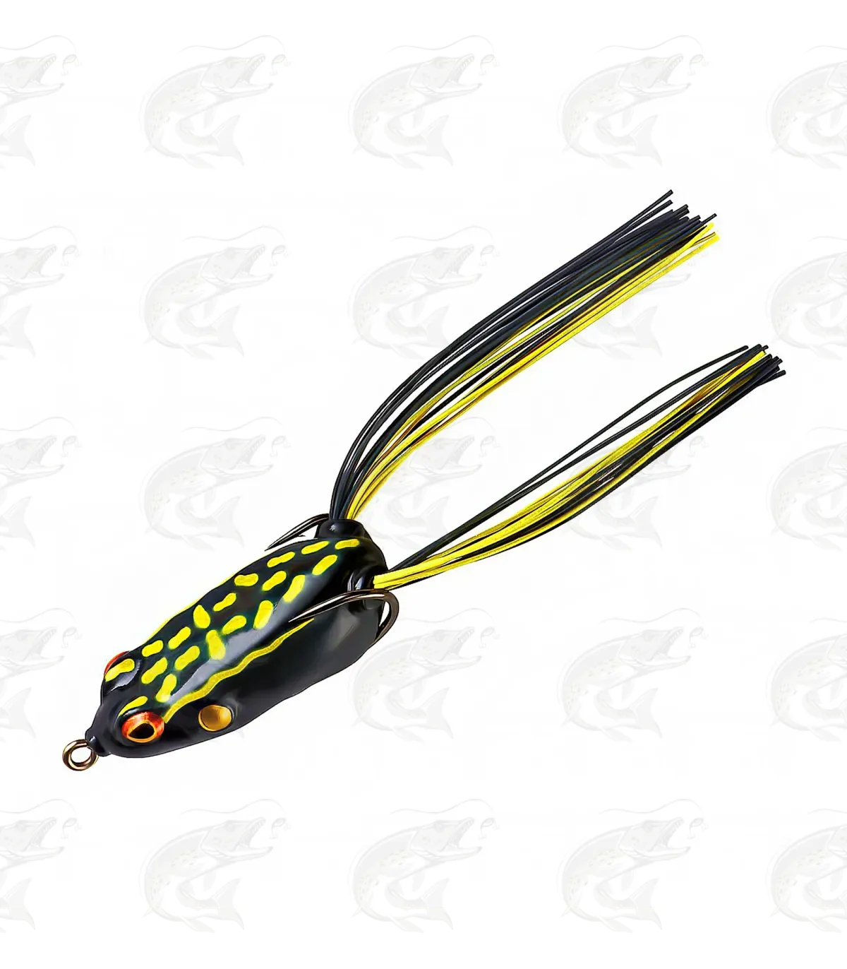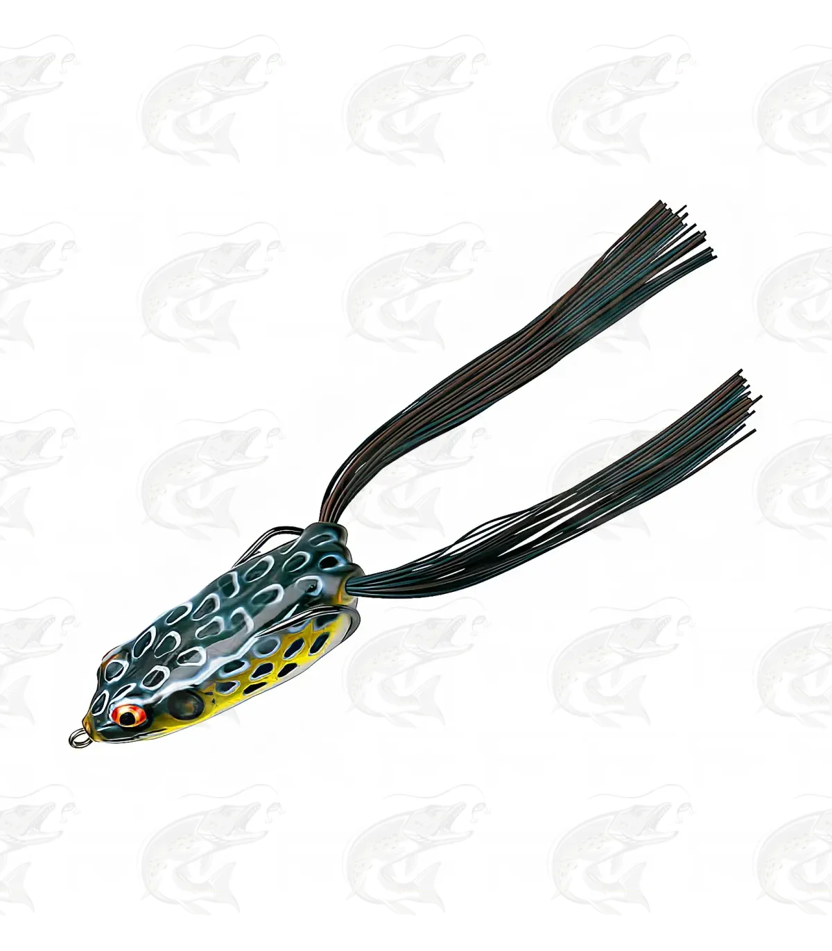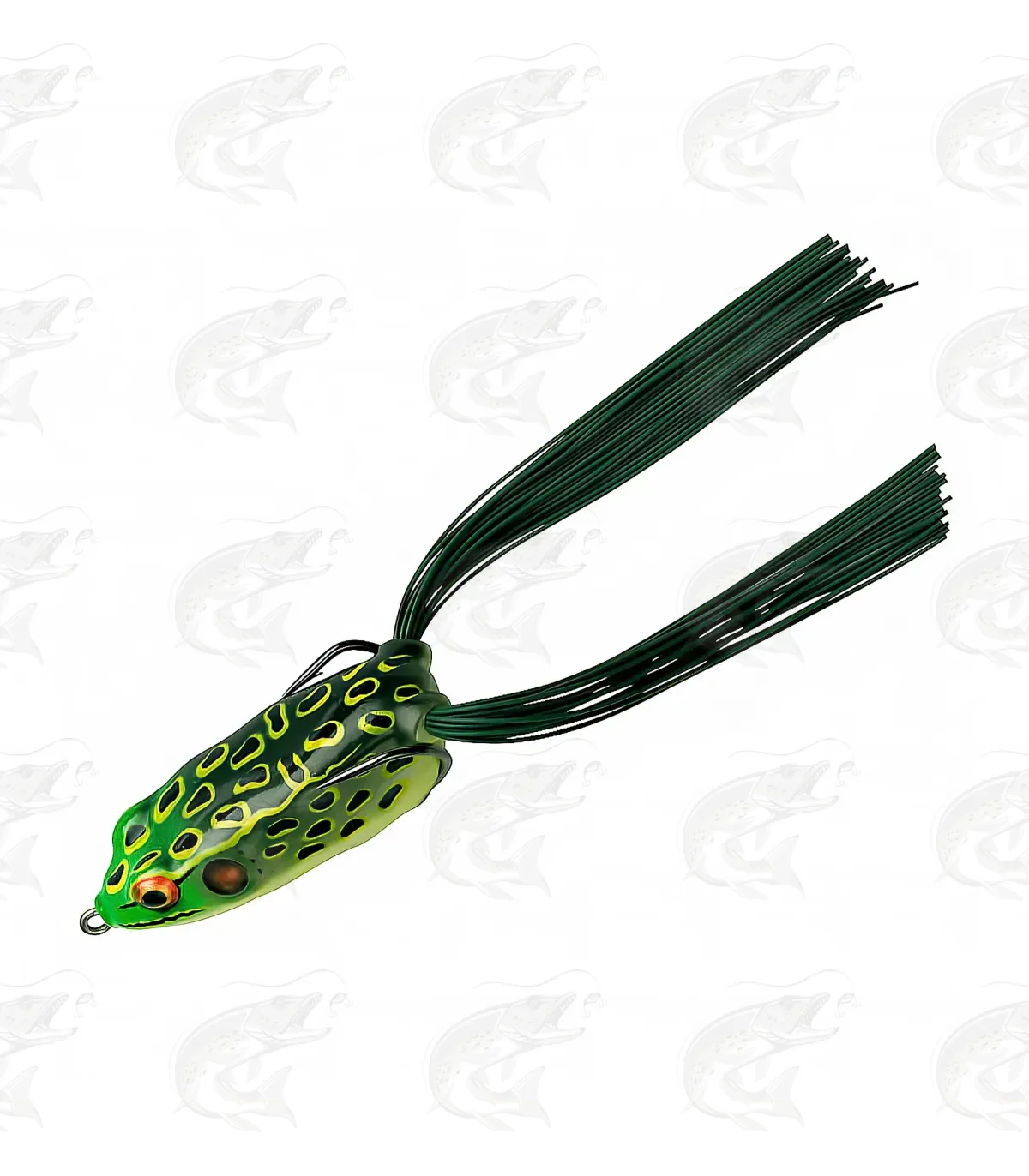 Booyah Pad Crasher soft plastic hollow body frog features a plastic with just the right consistency to ensure solid, consistent hook-ups while remaining weed- and snag-free.