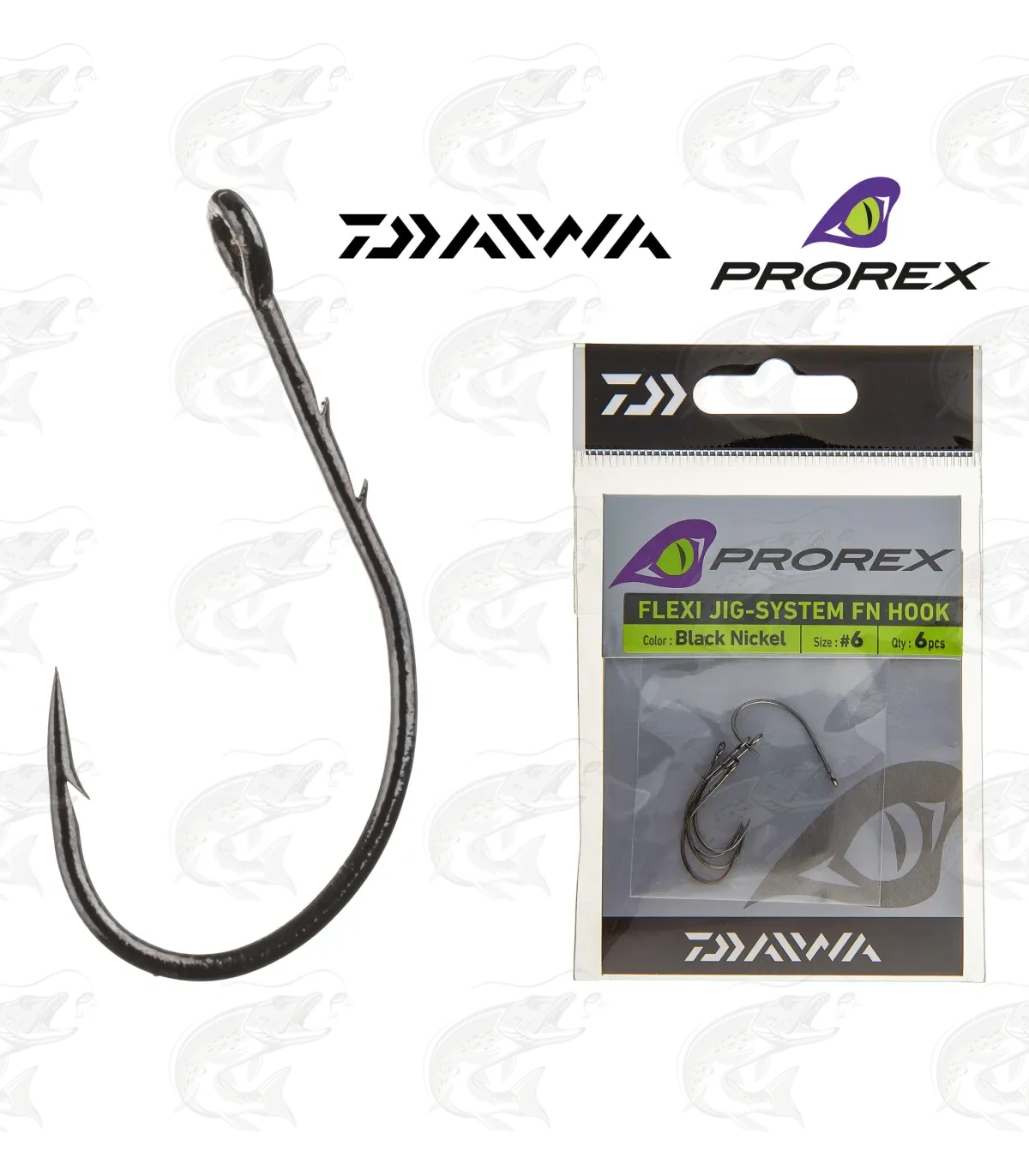 Daiwa Prorex Flexi Jig System FN are the fitting hooks for the Prorex Flexi Jig-System TG tungsten heads and other Cheburashka jig heads.