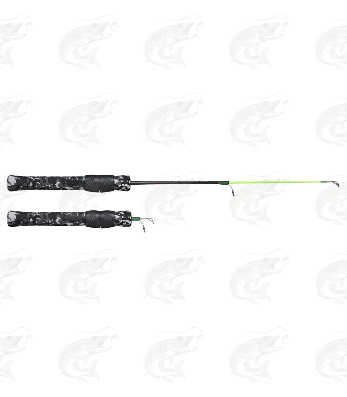 Lightweight easy to transport telescopic ice rods. Color coded tips mark different actions.