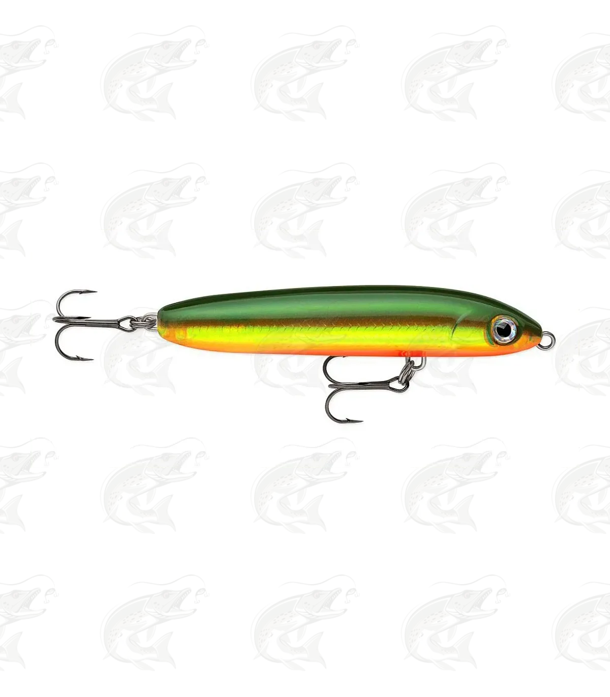 With a translucent body, 3D holographic eyes, and super sharp VMC black nickel hooks this topwater walk the dog bait is in a class all by itself.