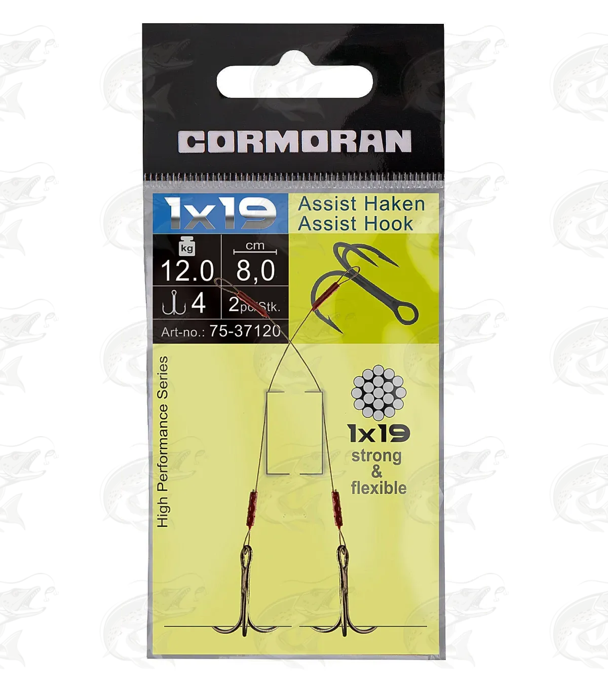 The Cormoran stinger rig is made of 1×19 steel wire. It features an optimal combination of length, diameter and hook size. Stingers are equipped with one strong CGS treble.