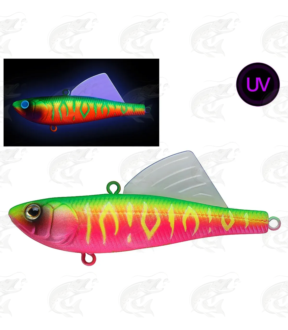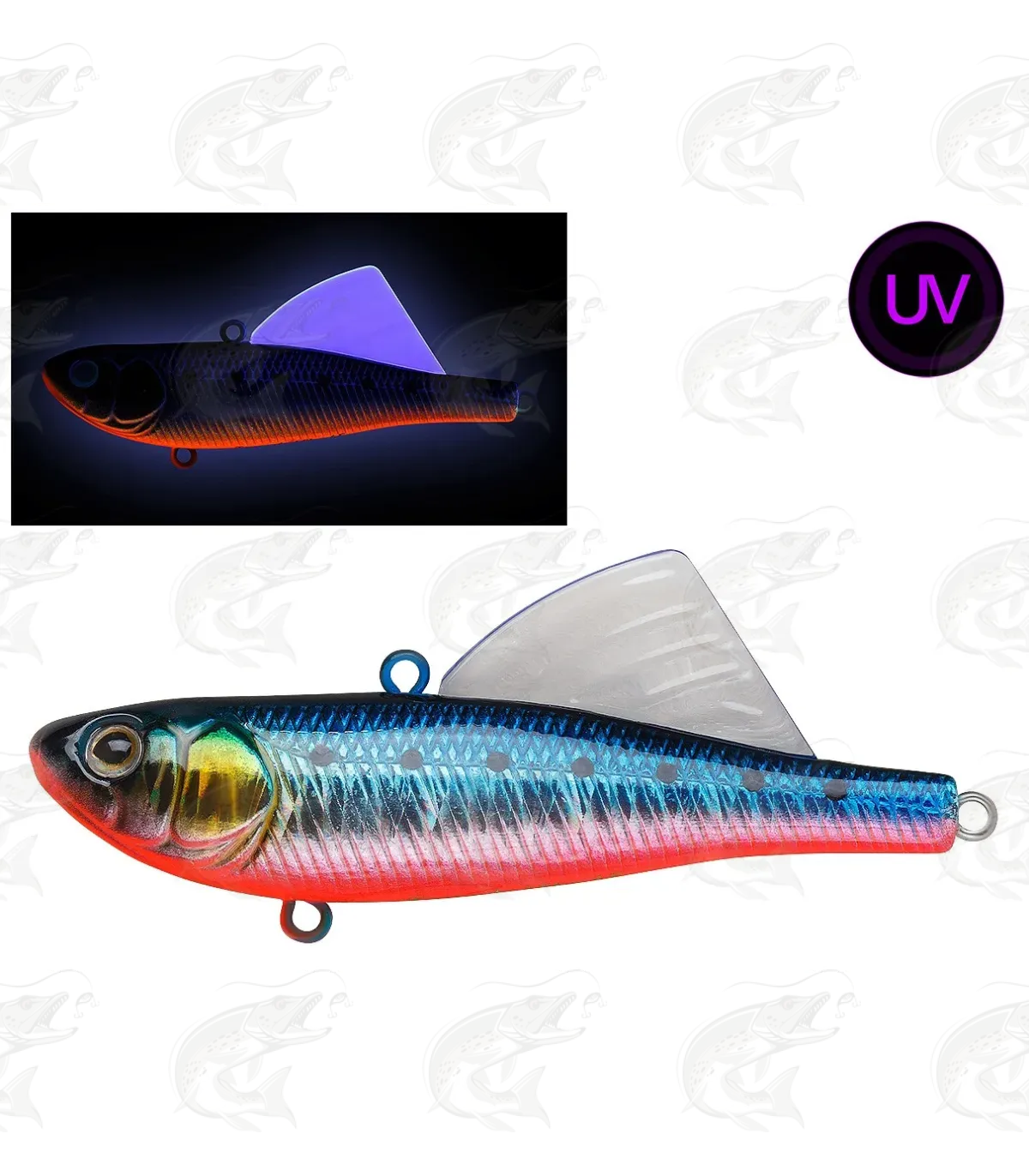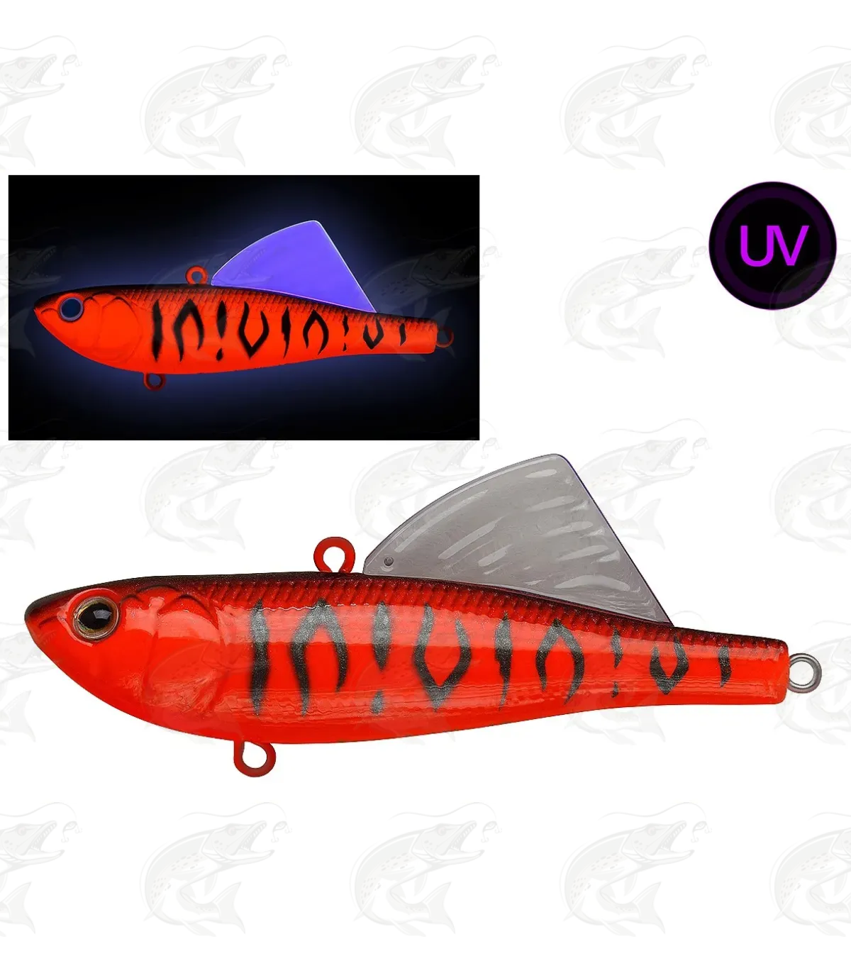 Tornado Vibe features a large fin that stablizes the action and creates acoustic vibrations.