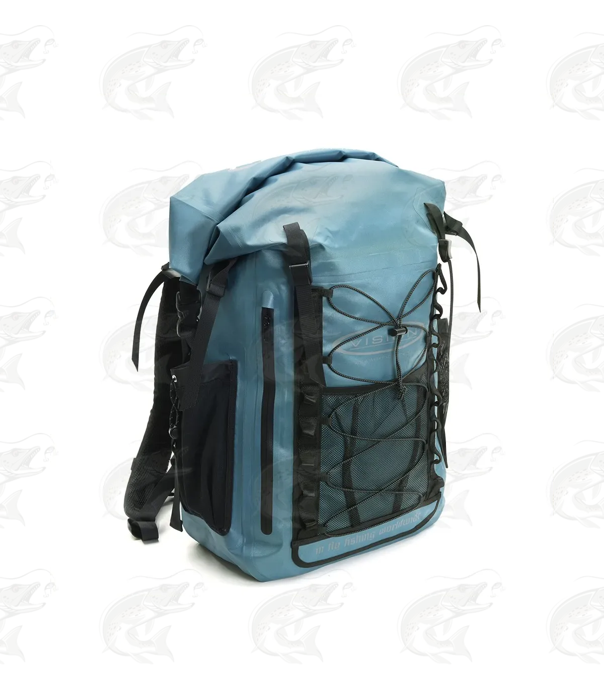 Aqua Weekend Pack has inner and outer mesh pockets for smaller items and a big water resistant zipper pocket and an elastic nylon string outside. On both sides there are mesh pockets and multiple accessory straps for your rod tubes, water bottles or other accessories.