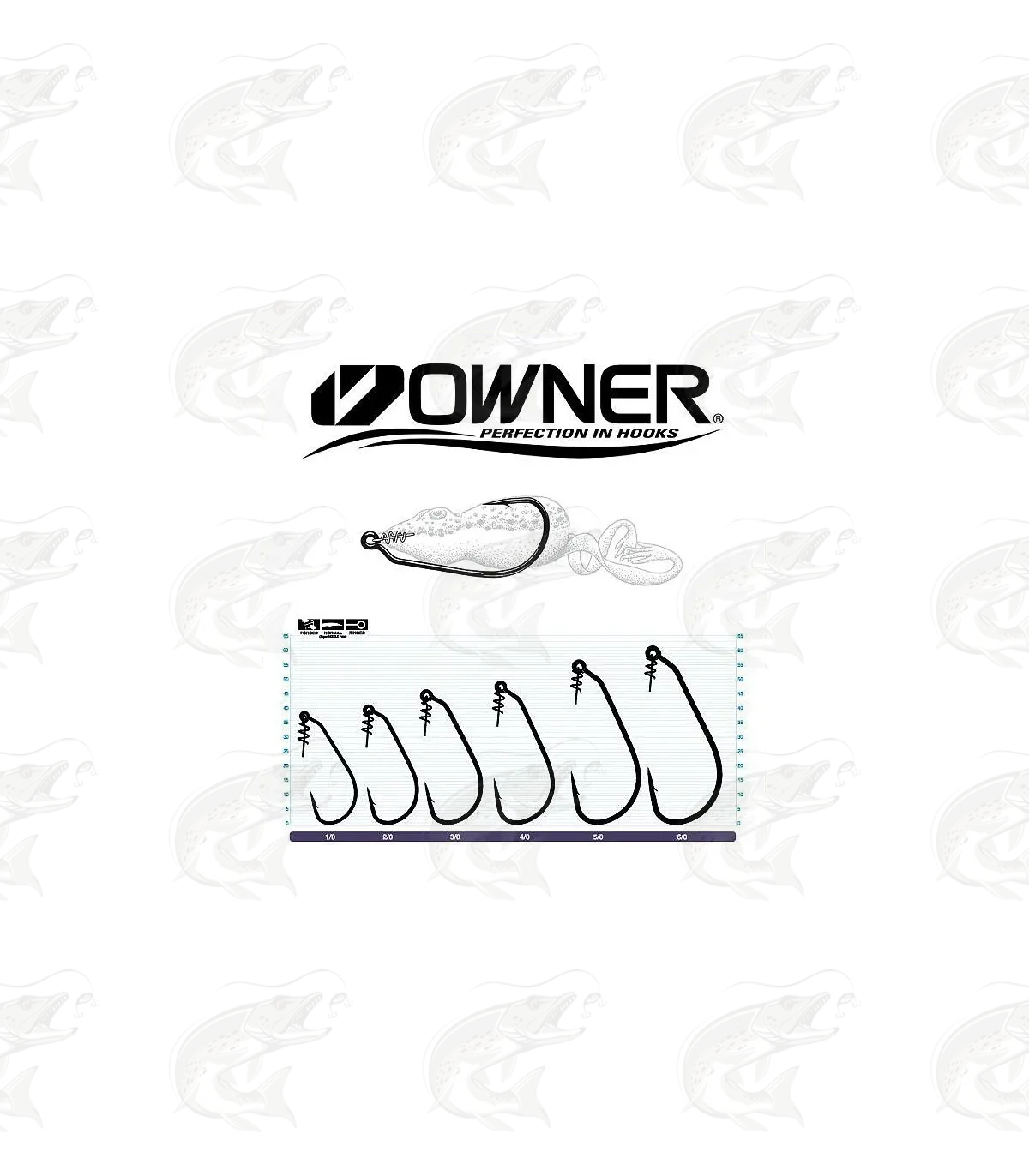| Hook size | No. 1/0 | No. 2/0 | No. 3/0 | No. 4/0 | No. 5/0 | No. 6/0 |
