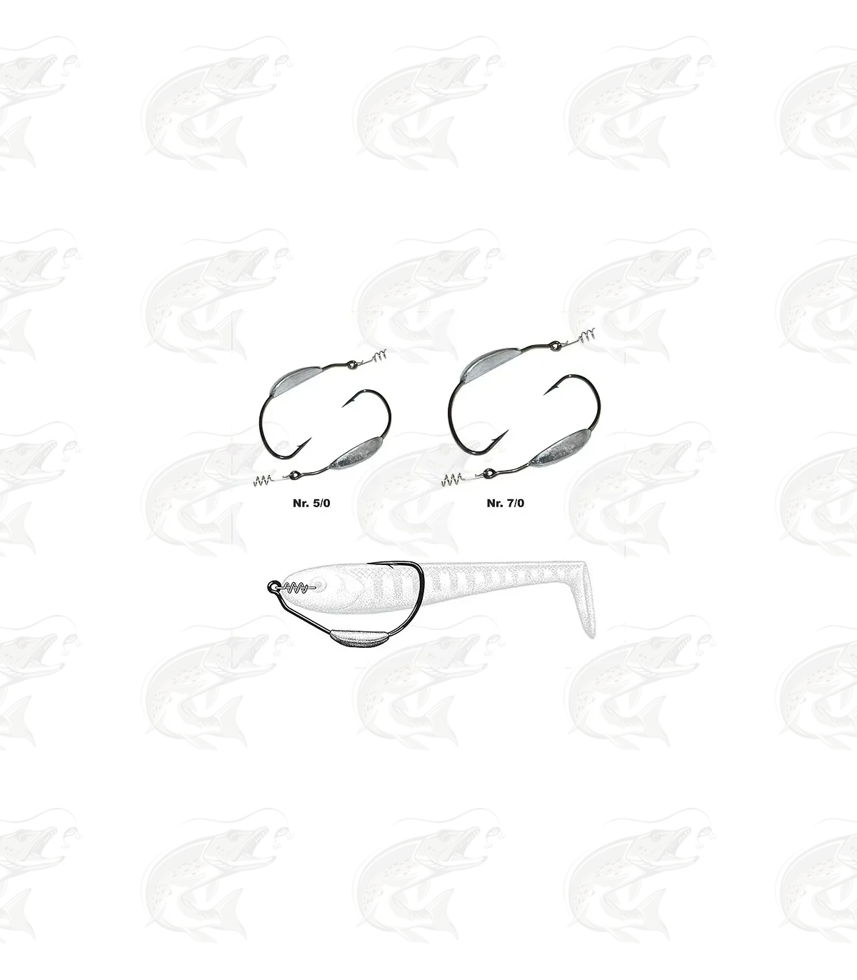 The non-movable weight is positioned so low on the hook shank that it acts like a keel, and tends to orient the lure in a natural swim position and prevent tumbling.