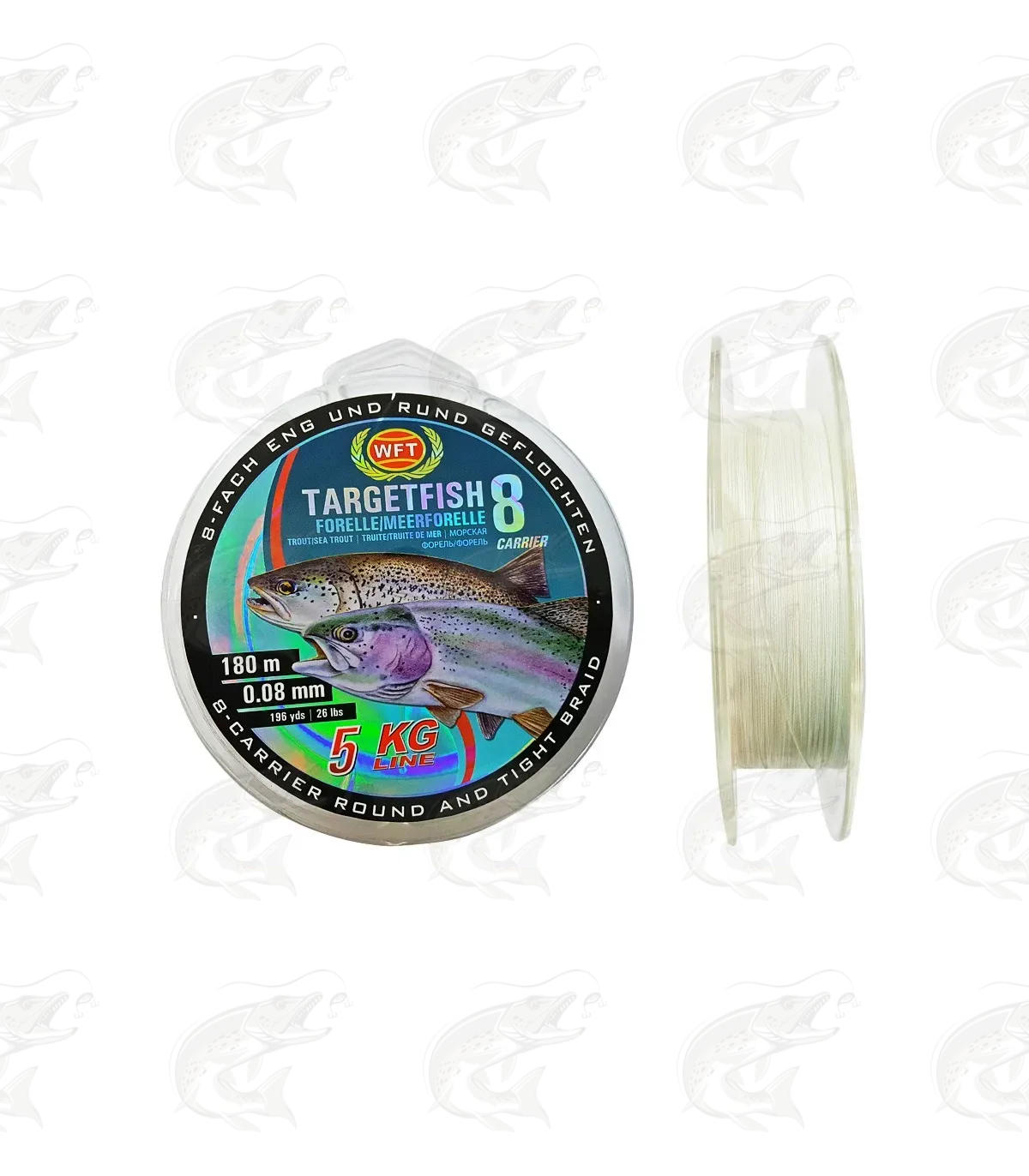 Targetfish 8 is the WFT’s newest 8-strand round-braided fishing line. Targetfish 8 Forelle / Sea Trout is particularly attuned to trout fishing. In trout fishing, every little detail counts to be successful and this semi-transparent braided line has its particular advantages when you’re fishing close to the the surface.