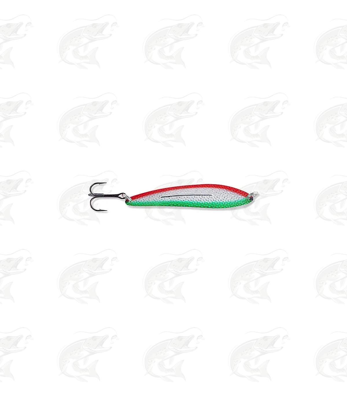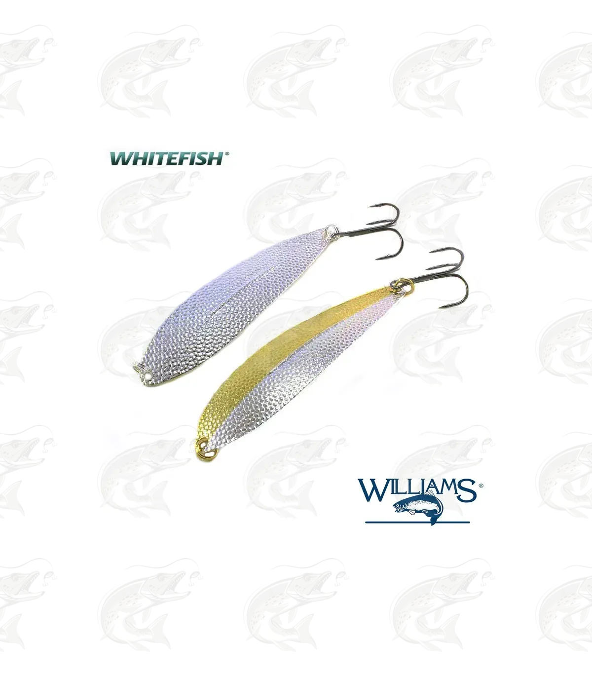 One of the many assets of the Williams Whitefish is its versatility. Ideal for trolling or casting. The design of the Whitefish allows it to be reversed for a different action. On slow days or during a slowdown in the bite, try reversing the spoon by simply switching the hook to the other end to trigger a response. The different action provoked by the reversal of the spoon can be an effective switch.