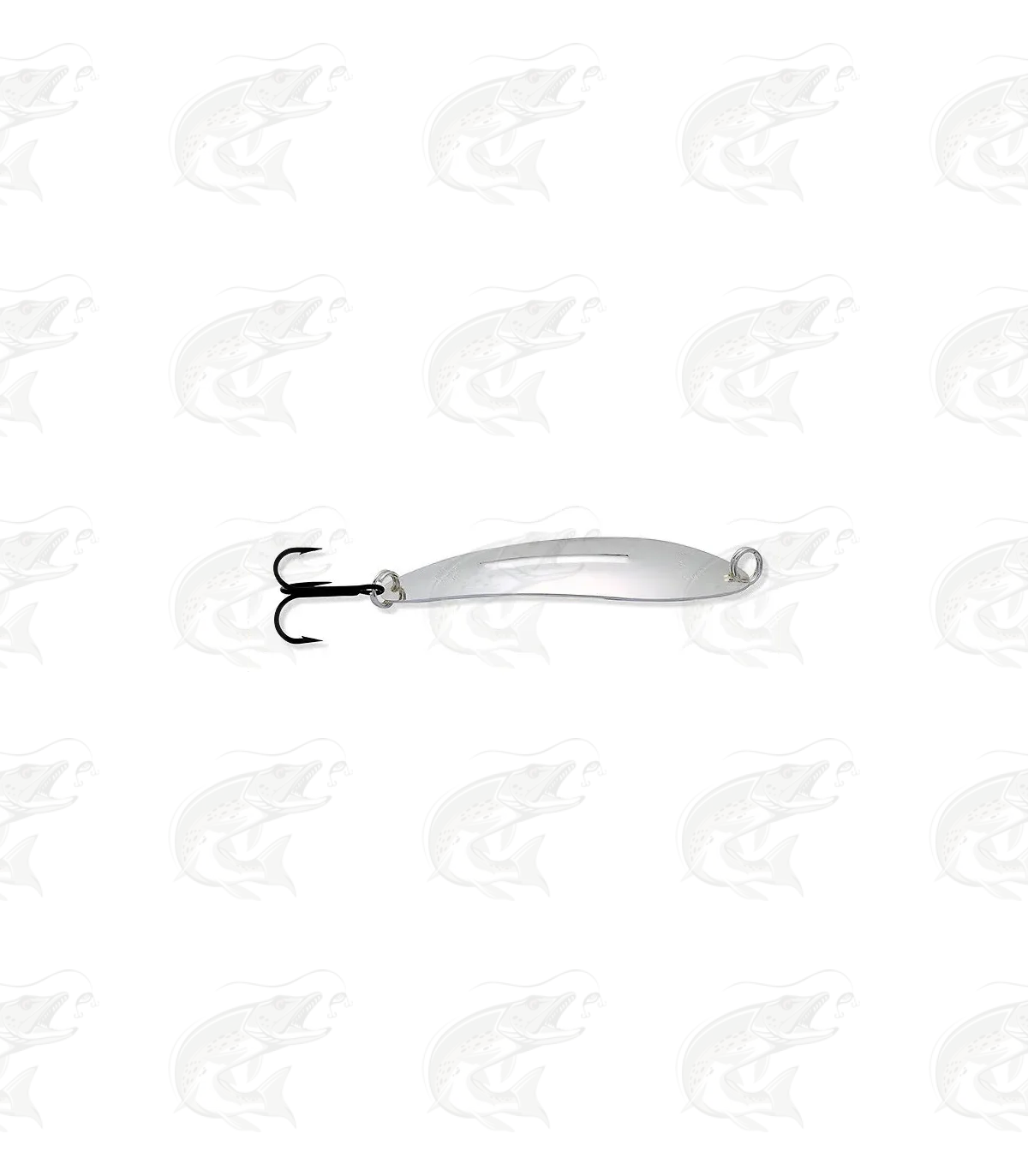 The stabilizer prevents the lure from rotating and when coupled with a short jerking retrieve, imparts a darting action that drives fish wild. The unique precious metal plating proovides a reflective quality that cannot be duplicated.